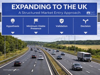 At gigCMO, we support B2B companies expanding into the UK through our Fractional CMO Service. We provide strategic marketing leadership to guide market entry, align teams around a clear go-to-market plan and structure execution using our business growth playbook.